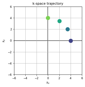 Demo of the phase encoding gradient and frequency encoding gradient over time leading to acquisition in k-space.