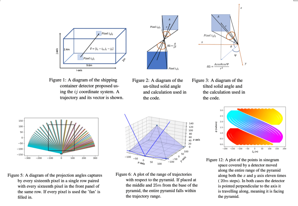 Results: The simulation returned trajectory range encompassing the pyramid and peak angular resolution of .0004sr. Sinogram space covered by one position was inadequate, however two moving detectors on adjacent sides of the pyramid cover a significant portion. Resolution at the center of the pyramid is roughly 3m.